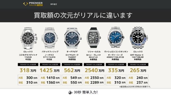 PREMIER VALUE 一括査定(プレミアバリュー)で時計を売るメリット